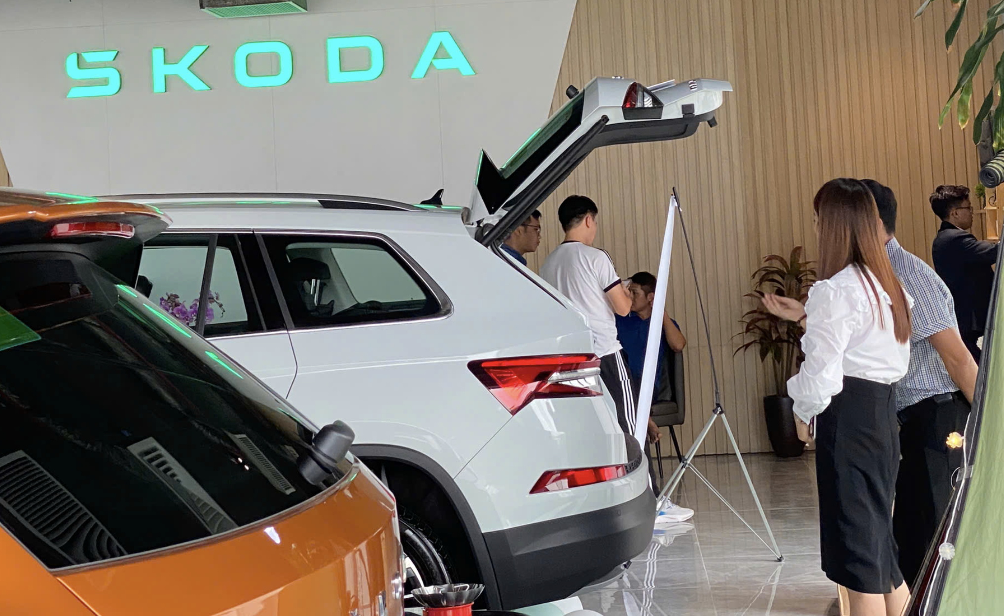 Khách hàng tham quan gian trưng bày sản phẩm tại Skoda Thái Bình.