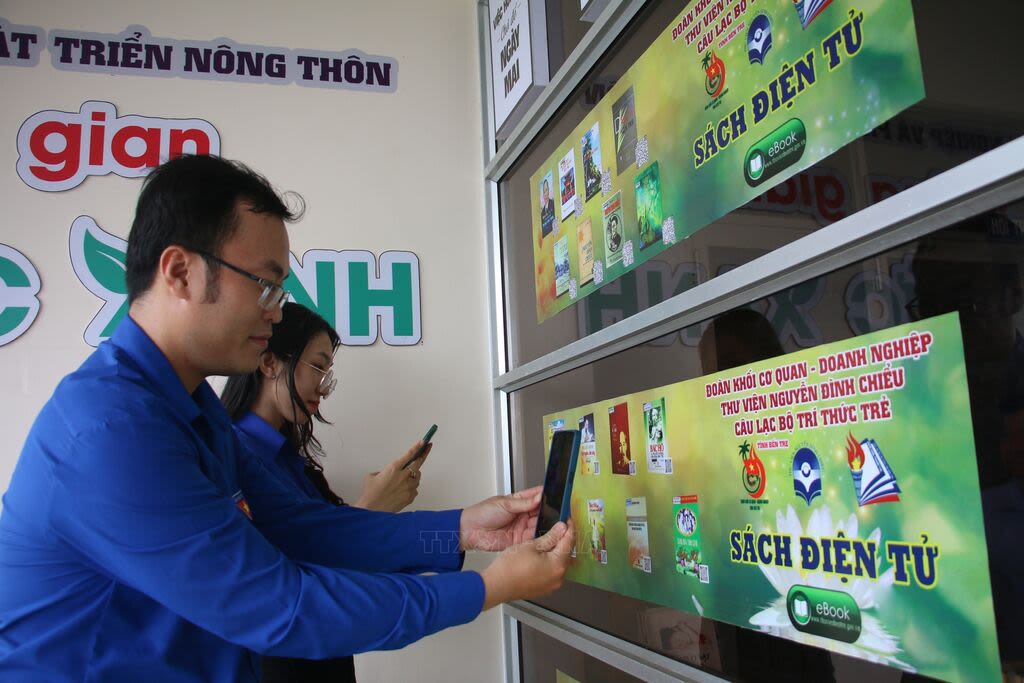 Ra mắt không gian "Tri thức xanh" với nhiều đầu sách điện tử tại Bến Tre. Ảnh: TTXVN
