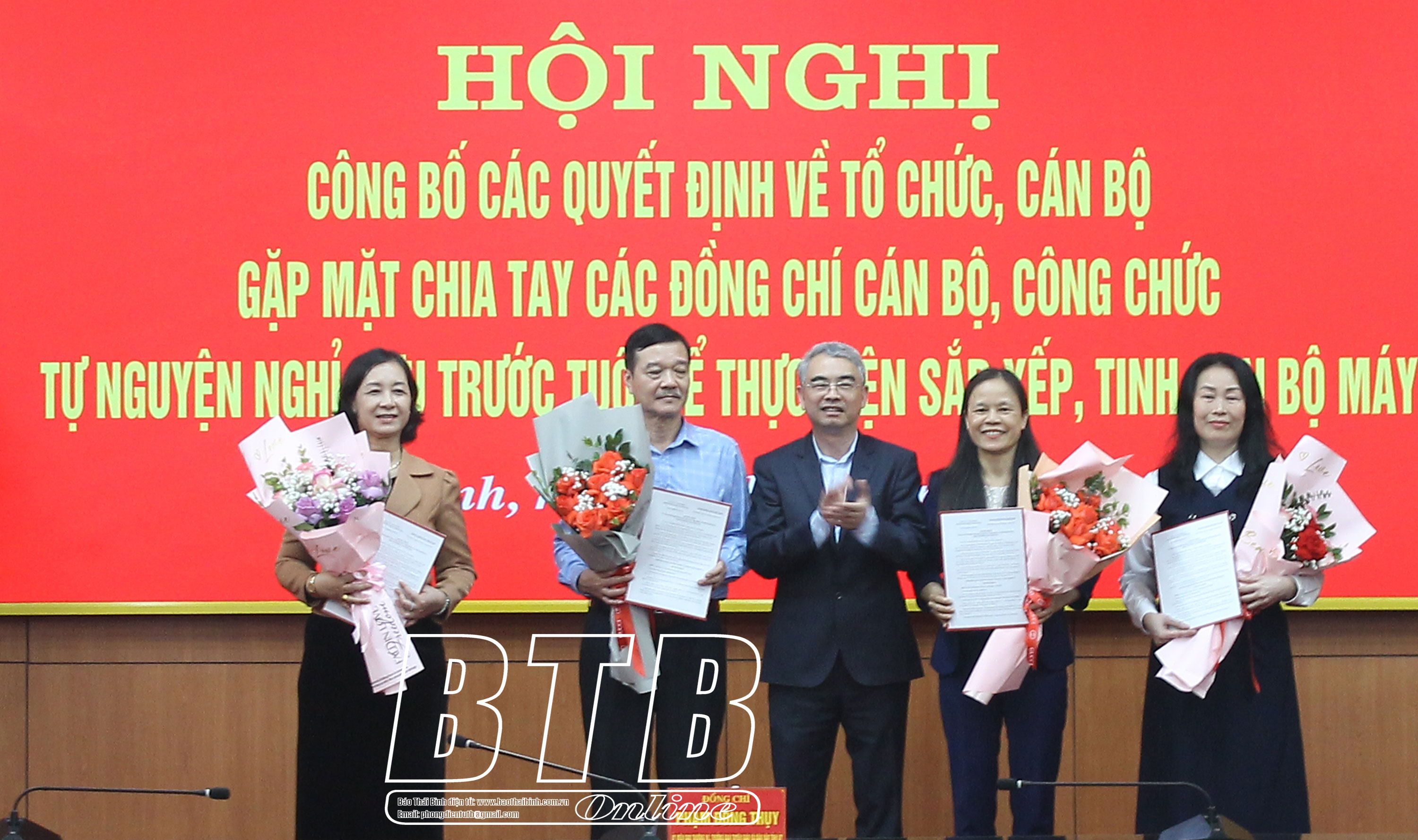 Hội nghị đã công bố các quyết định thành lập 5 phòng chuyên môn và bổ nhiệm 5 đồng chí trưởng phòng, phó trưởng phòng phụ trách, 9 đồng chí phó trưởng phòng các phòng chuyên môn thuộc Ban Tuyên giáo và Dân vận Tỉnh ủy; thành lập 5 chi bộ trực thuộc Đảng bộ Ban Tuyên giáo và Dân vận Tỉnh ủy; chỉ định 5 đồng chí giữ chức Bí thư Chi bộ.