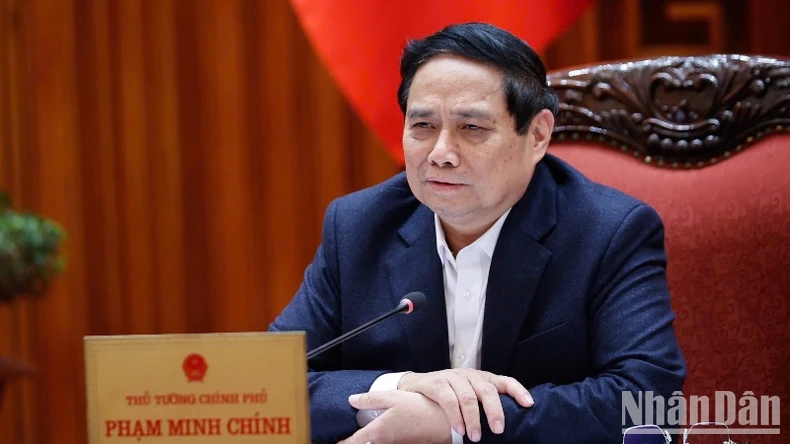 Thủ tướng Phạm Minh Chính phát biểu ý kiến tại cuộc họp. (Ảnh: TRẦN HẢI).