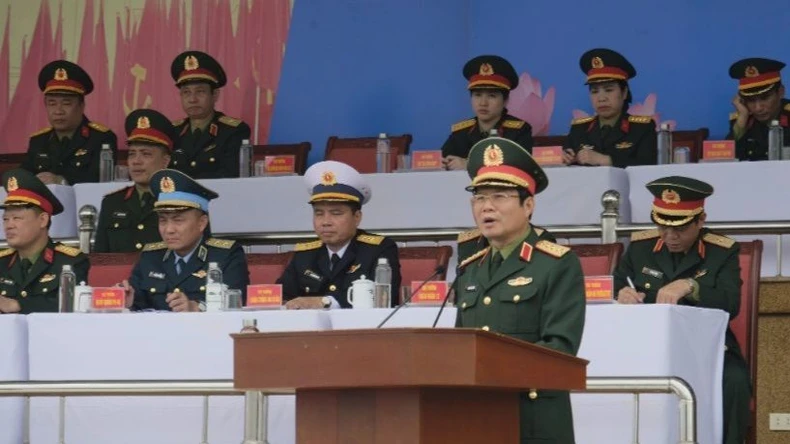 Đại tướng Nguyễn Tân Cương phát biểu kết luận buổi hợp luyện.