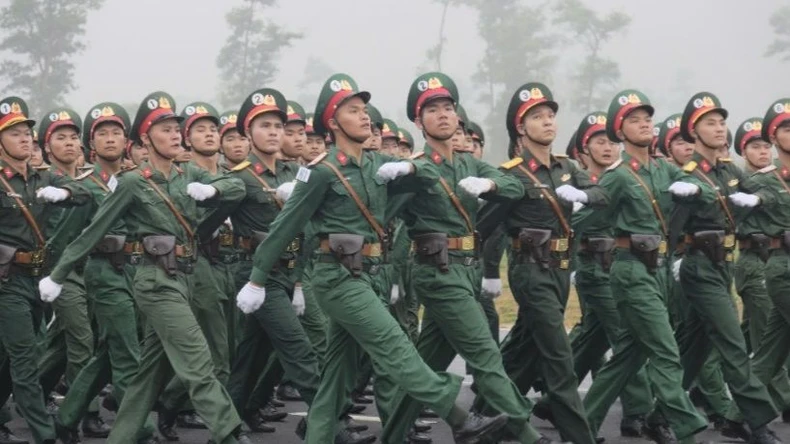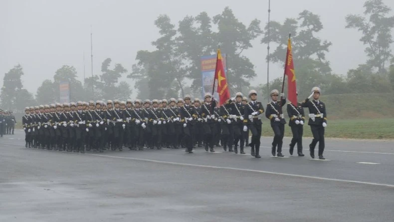 Buổi hợp luyện tại Trung tâm Huấn luyện quân sự quốc gia 4, Hà Nội có 2 khối đứng, 14 khối đi đại diện các lực lượng trong toàn quân.