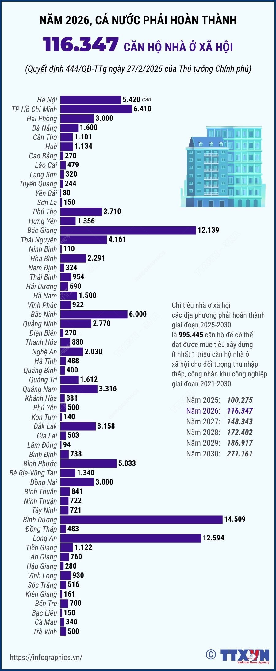 Năm 2026, cả nước phải hoàn thành 116.347 căn hộ nhà ở xã hội