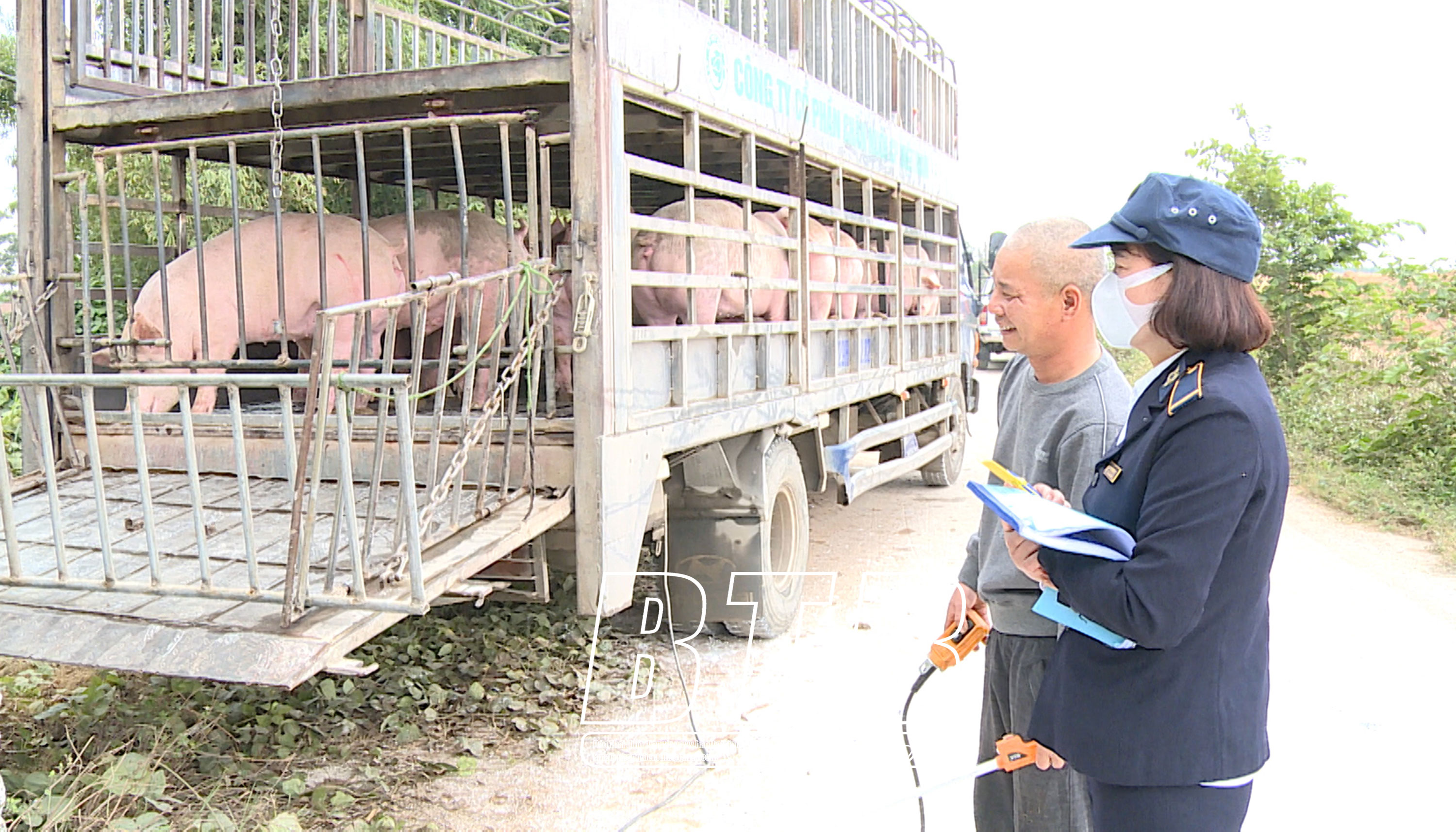 Cán bộ Chi cục Trồng trọt và Chăn nuôi tỉnh kiểm tra, làm thủ tục cho các trang trại xuất bán lợn hơi.