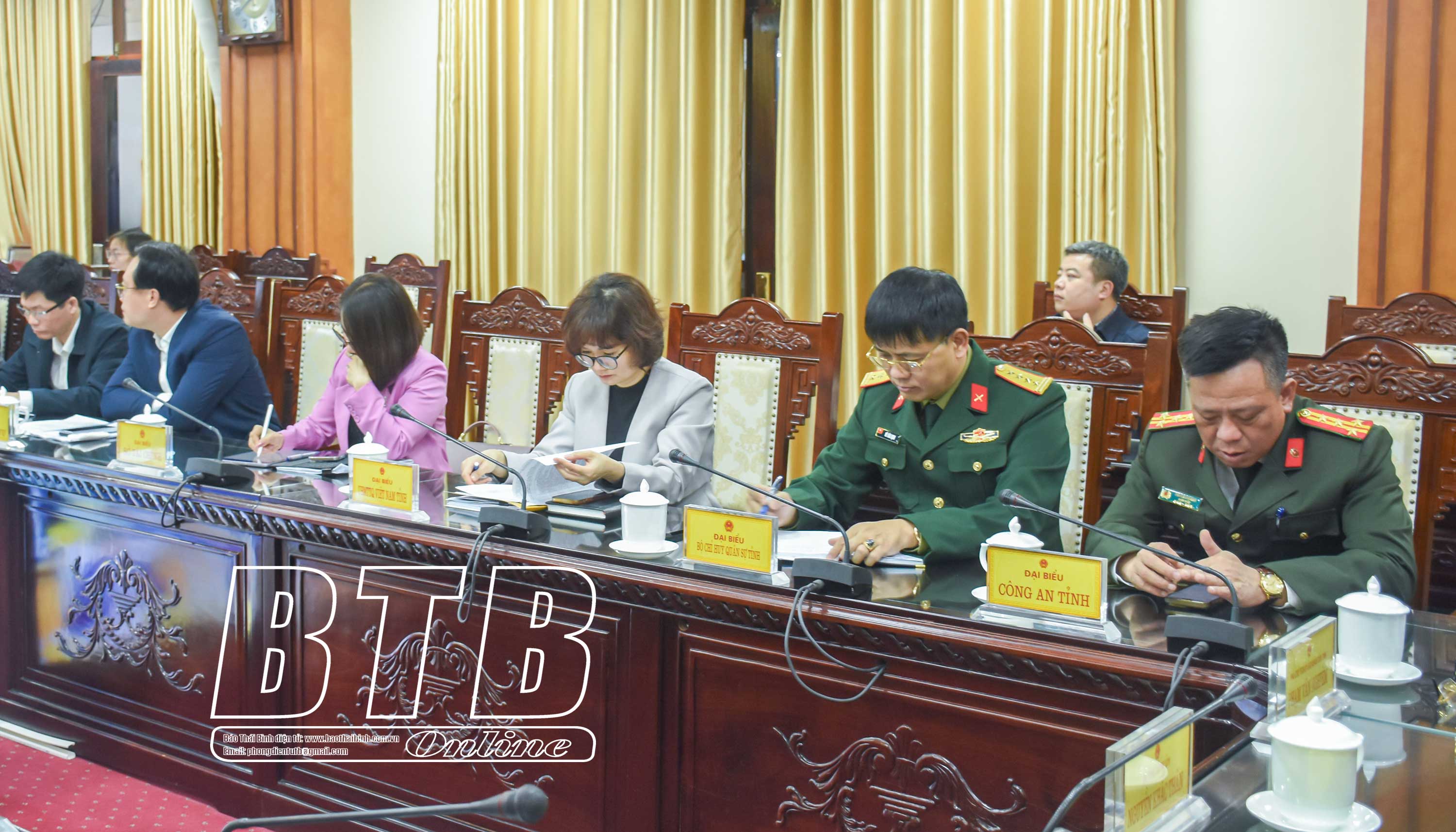 Các đồng chí lãnh đạo tỉnh và đại biểu dự phiên họp tại điểm cầu Thái Bình.