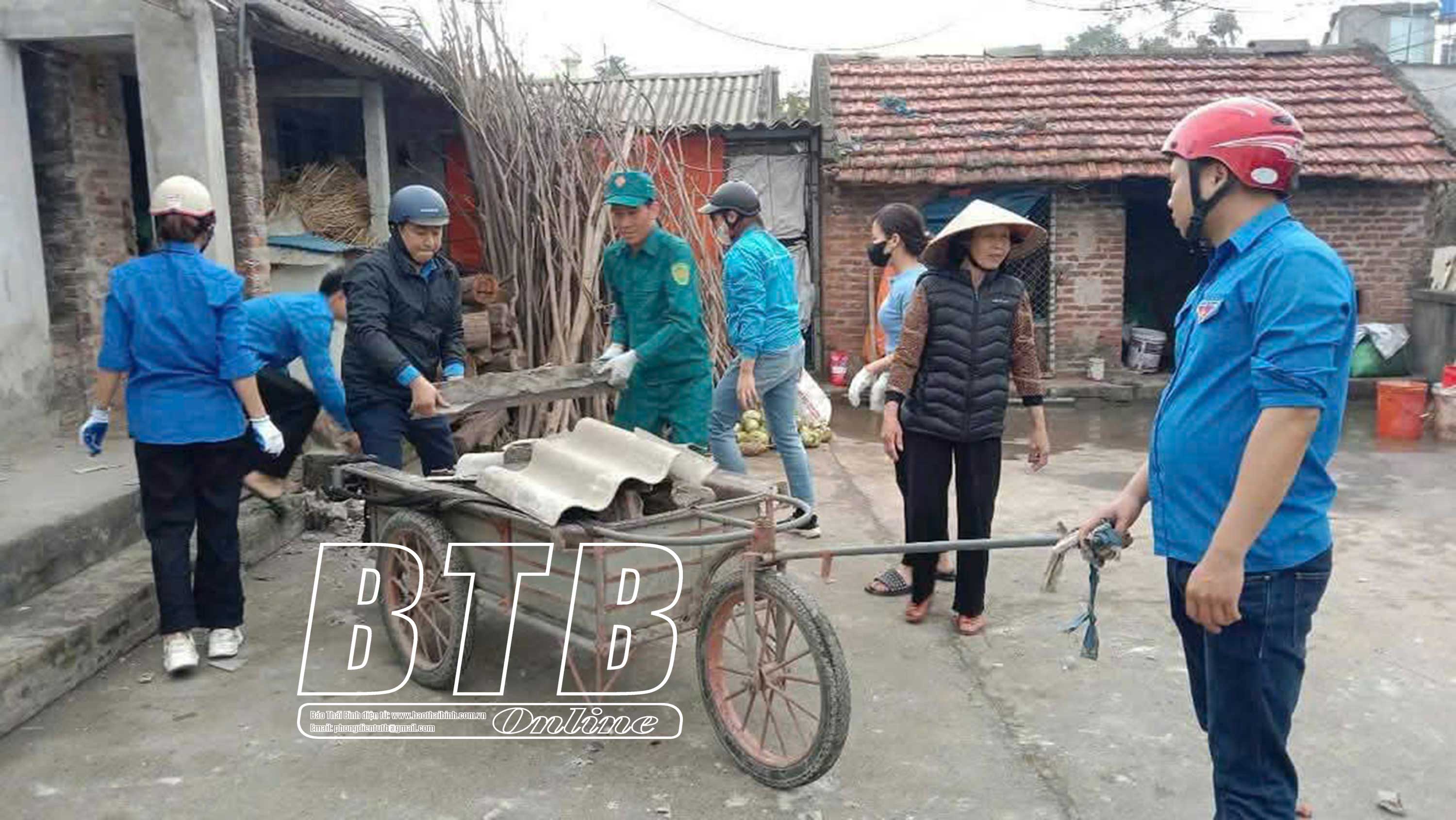 Đoàn viên, thanh niên các xã trong huyện hỗ trợ tháo dỡ nhà cho hộ nghèo xã Trang Bảo Xá.