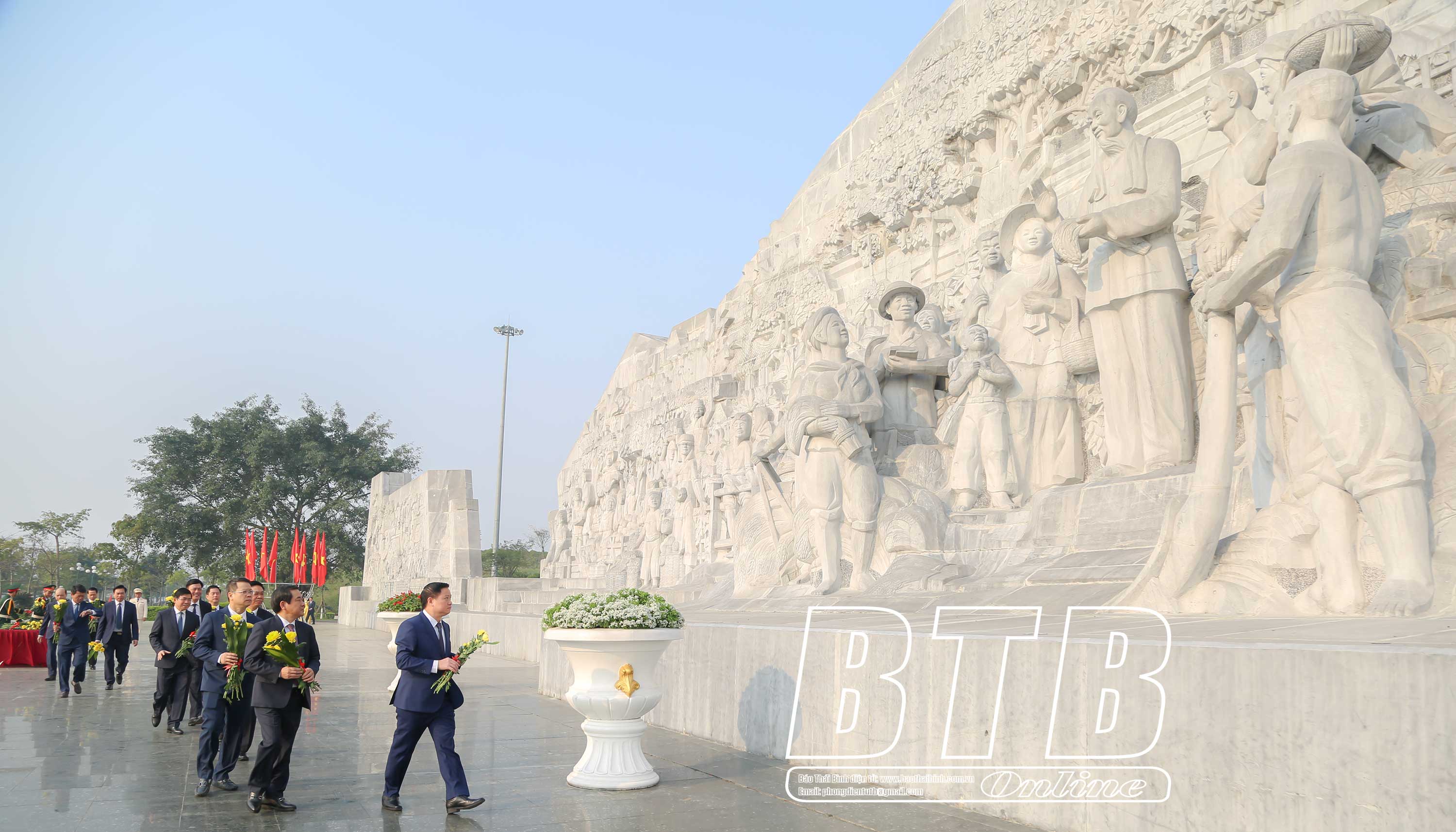 Các đồng chí lãnh đạo tỉnh dâng hoa tại Tượng đài Bác Hồ với nông dân Việt Nam tại Quảng trường Thái Bình.