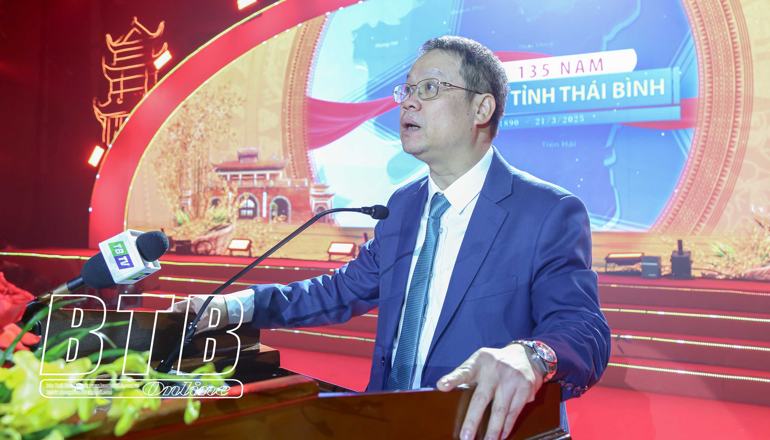 Đồng chí Phó Bí thư Tỉnh ủy, Chủ tịch UBND tỉnh nhấn mạnh: Trải qua bao thế hệ, từ buổi đầu mở đất đến hôm nay, nhân dân Thái Bình đã bền bỉ, kiên cường vượt qua thiên tai, địch họa, chung tay giữ gìn và vun đắp cho mảnh đất này ngày một vững mạnh. Sinh thời, Chủ tịch Hồ Chí Minh đã 5 lần về thăm và làm việc tại Thái Bình – niềm tự hào lớn lao và là nguồn cổ vũ mạnh mẽ để toàn tỉnh không ngừng nỗ lực vươn lên. Gần 40 năm thực hiện công cuộc đổi mới, Đảng bộ, chính quyền và nhân dân Thái Bình đã có nhiều bước đi sáng tạo, năng động, đạt được những thành tựu quan trọng trên các lĩnh vực, tạo nền tảng để tỉnh tiếp tục phát triển nhanh, bền vững. Đó là minh chứng rõ nét cho sự lãnh đạo đúng đắn của Đảng, của Đảng bộ tỉnh, chính quyền tỉnh; sự nỗ lực, đoàn kết của các thế hệ cán bộ, đảng viên và nhân dân Thái Bình, trong tỉnh cũng như trên khắp mọi miền Tổ quốc.
