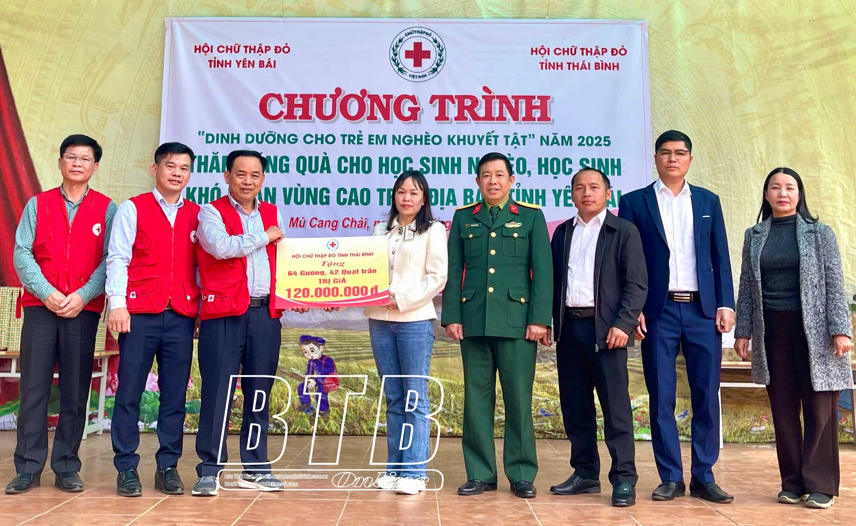 Đoàn đã đến thăm, ủng hộ 50 triệu đồng xây dựng, sửa chữa nhà ở cho hộ nghèo tỉnh Yên Bái; trao 46 chiếc giường tầng, 42 chiếc quạt trần và nhiều suất quà ý nghĩa, tổng trị giá 120 triệu đồng cho học sinh có hoàn cảnh khó khăn của Trường Phổ thông Dân tộc bán trú Tiểu học và THCS Mồ Dề, huyện Mù Cang Chải. Toàn bộ nguồn kinh phí do các cấp hội chữ thập đỏ tỉnh Thái Bình vận động các nhà hảo tâm tài trợ và trích từ quỹ nhân đạo của Hội Chữ thập đỏ tỉnh.