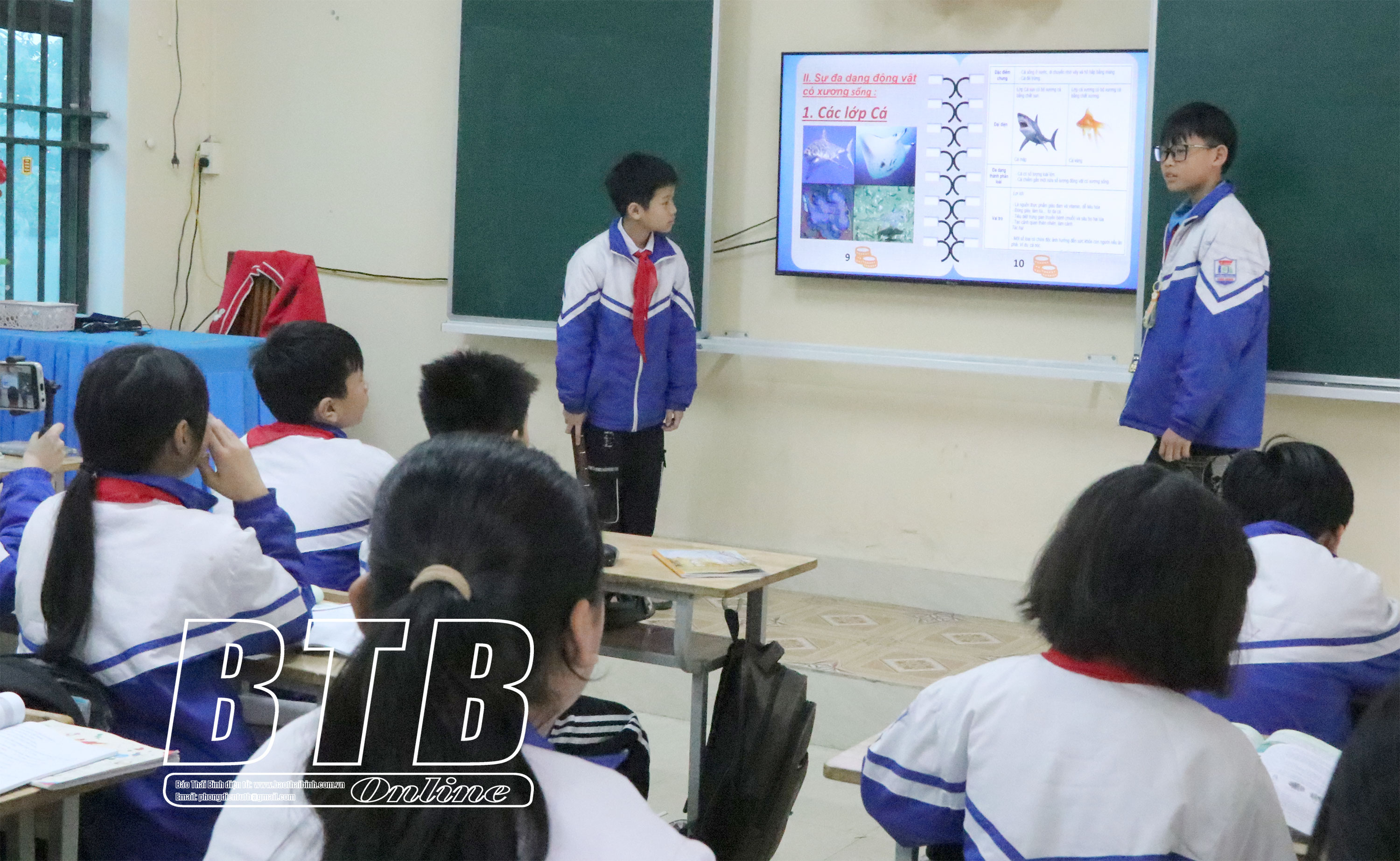 Tiết học của các em học sinh Trường Tiểu học và THCS Đông Hoàng (Đông Hưng).