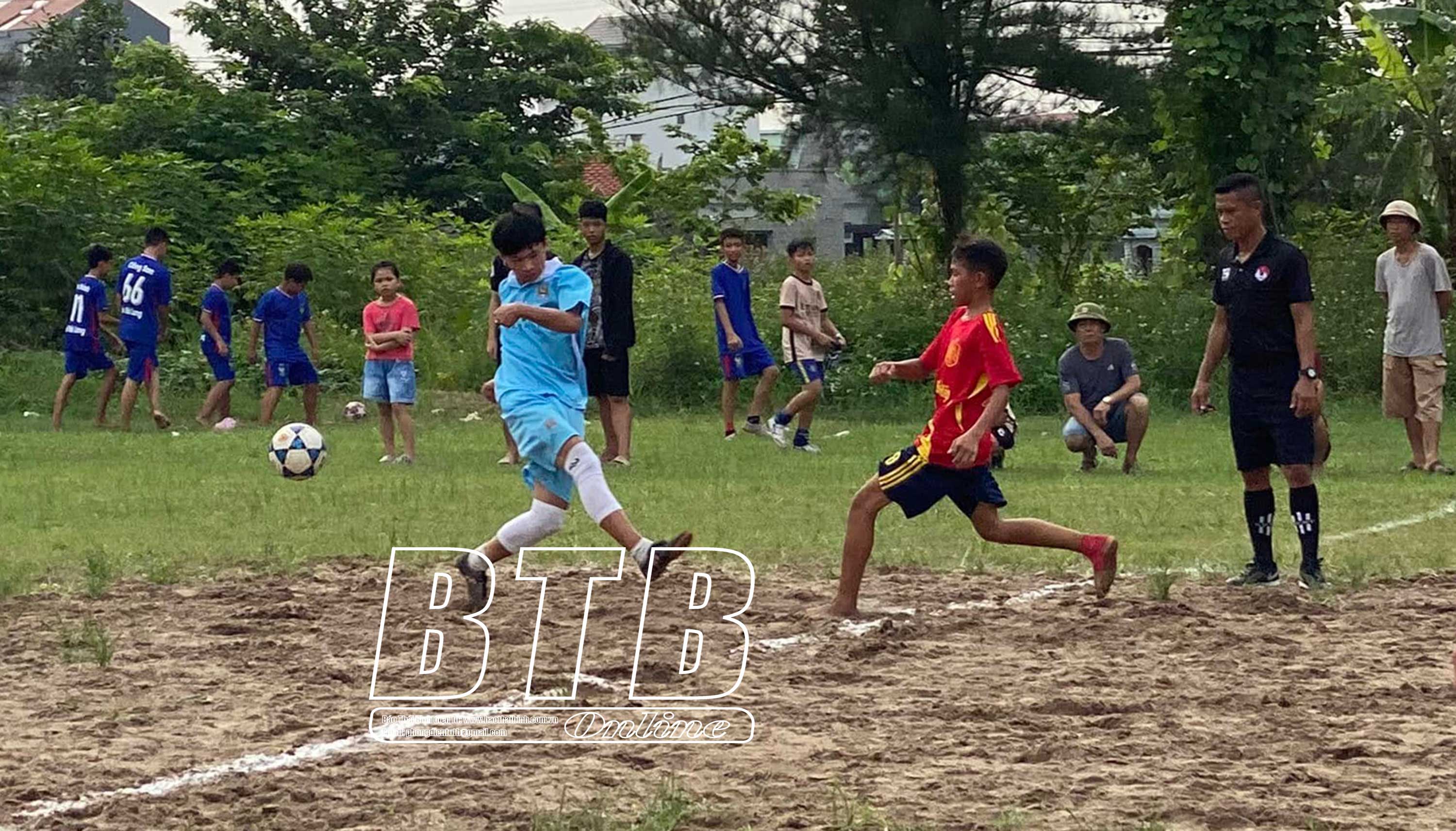 Thiếu niên nhi đồng tham gia giải bóng đá do Đoàn Thanh niên xã Quỳnh Giao (Quỳnh Phụ) tổ chức.