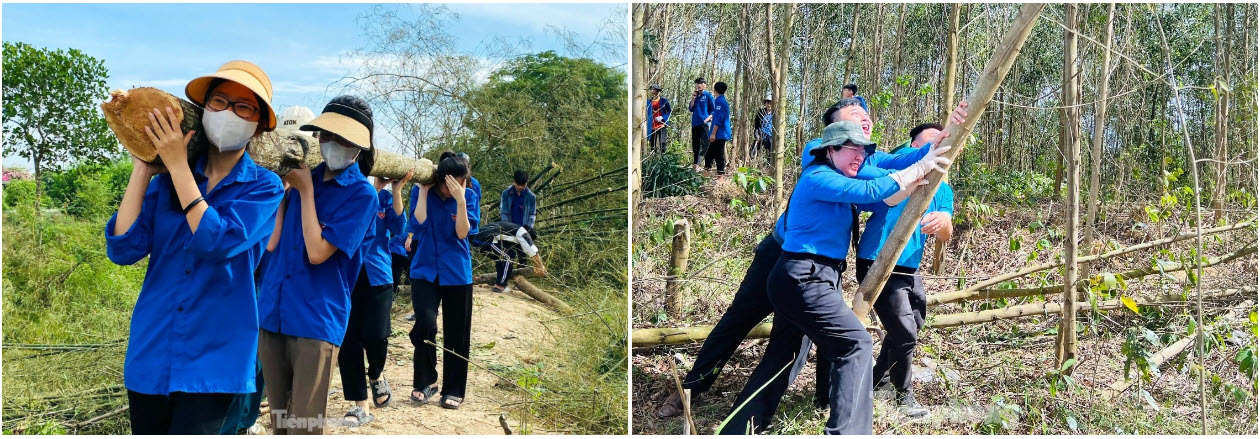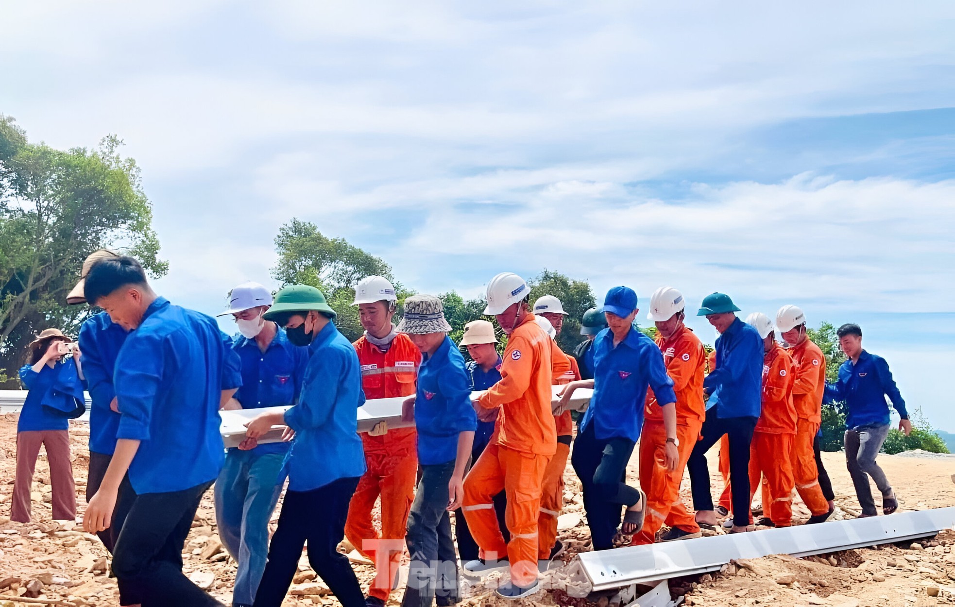 Đội hình xung kích tình nguyện của đoàn viên thanh niên góp sức vào dự án đường dây 500kV mạch 3 qua địa bàn tỉnh Nghệ An. Ảnh: Ngọc Tú