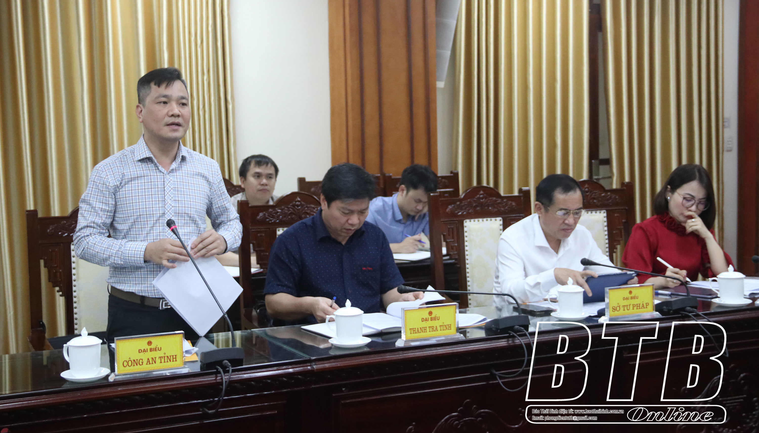 Đại diện Công an tỉnh phát biểu tại cuộc họp.