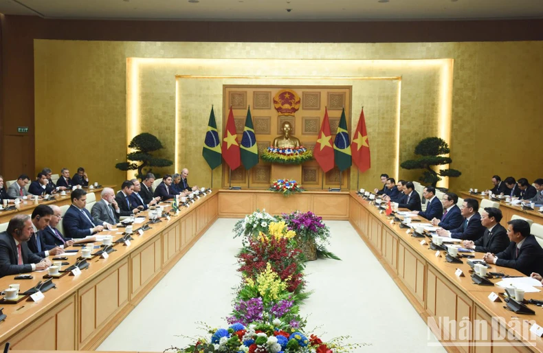 Tại buổi hội kiến, Thủ tướng Chính phủ Phạm Minh Chính chào mừng Tổng thống Lula da Silva và Đoàn đại biểu cấp cao Brazil tới thăm Việt Nam; nhắc lại ấn tượng sâu sắc về đất nước, con người Brazil và các cuộc gặp với Tổng thống Lula da Silva, gần đây nhất là trong chuyến thăm chính thức Brazil vào tháng 9/2023 và cuộc hội đàm song phương vào tháng 11/2024 tại Rio de Janeiro, nơi hai bên ra Tuyên bố nâng cấp quan hệ song phương lên Đối tác chiến lược.