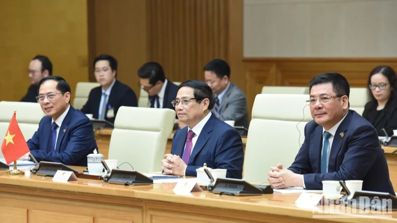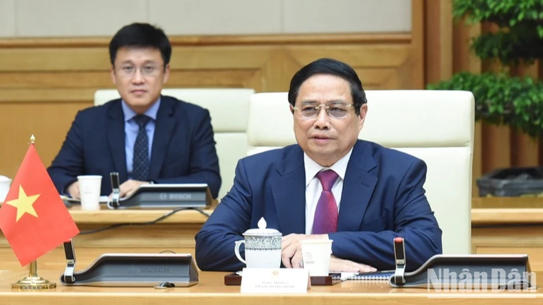 Thủ tướng Phạm Minh Chính phát biểu ý kiến tại buổi hội kiến. (Ảnh: TRẦN HẢI).