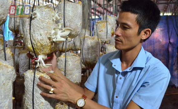 Mô hình trồng nấm của anh Nguyễn Văn Tưởng, thanh niên họ giáo Khuốc, thôn Khuốc Đông, xã Phong Châu (huyện Đông Hưng) cho thu lãi khoảng 200 triệu đồng/năm.