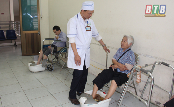 Các bác sĩ Bệnh biện Phục hồi chức năng tỉnh chăm sóc, điều trị cho người bệnh cao tuổi.