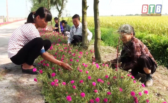 Nhiều tuyến đường được các chi hội phụ nữ huyện Tiền Hải trồng và chăm sóc.