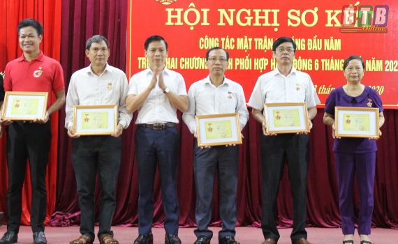 Nhân dịp này, lãnh đạo Ủy ban MTTQ tỉnh đã trao kỷ niệm chương vì sự nghiệp đại đoàn kết dân tộc cho 6 cá nhân, trao bằng khen của Ủy ban Trung ương MTTQ Việt Nam cho 2 cá nhân; lãnh đạo Ủy ban MTTQ huyện trao giấy khen cho các tập thể, cá nhân có thành tích tiêu biểu trong công tác mặt trận 6 tháng đầu năm 2020.