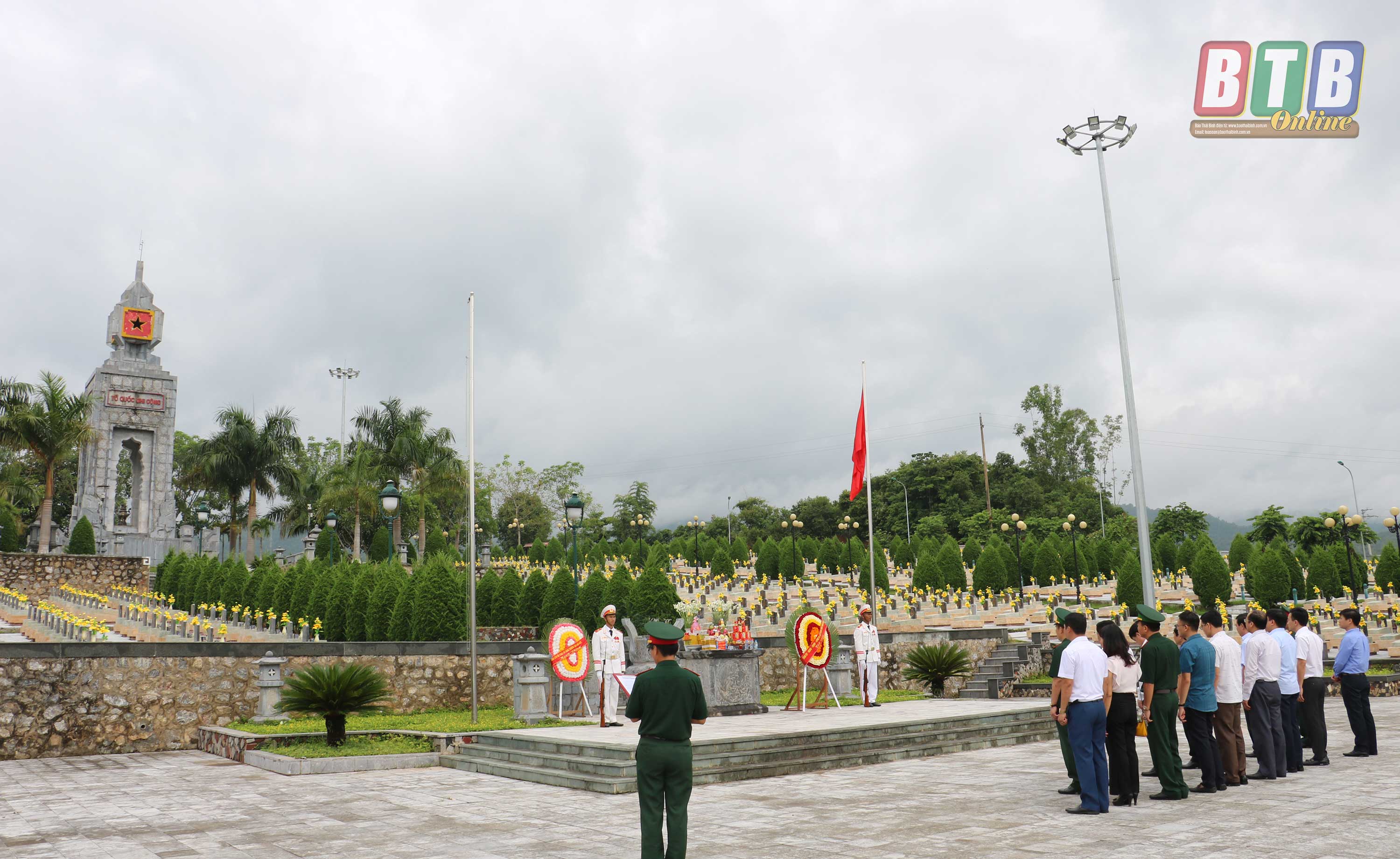 Đồng chí Nguyễn Tiến Thành, Phó Bí thư thường trực Tỉnh ủy cùng các đại biểu thắp hương tại phần mộ Anh hùng Lực lượng vũ trang nhân dân, liệt sĩ Trần Can - Người cắm cờ trên căn cứ Him Lam và anh dũng hi sinh.