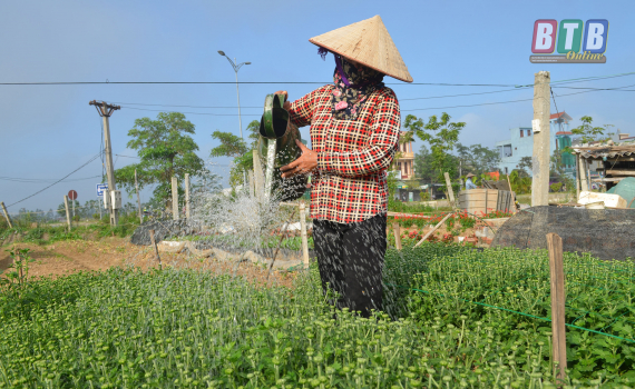 Phụ nữ xã Vũ Chính (thành phố Thái Bình) chăm sóc hoa, cây cảnh.