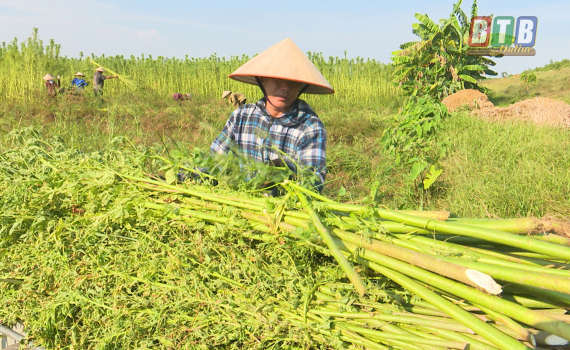 Thu hoạch cây đay tại xã Đông Á.