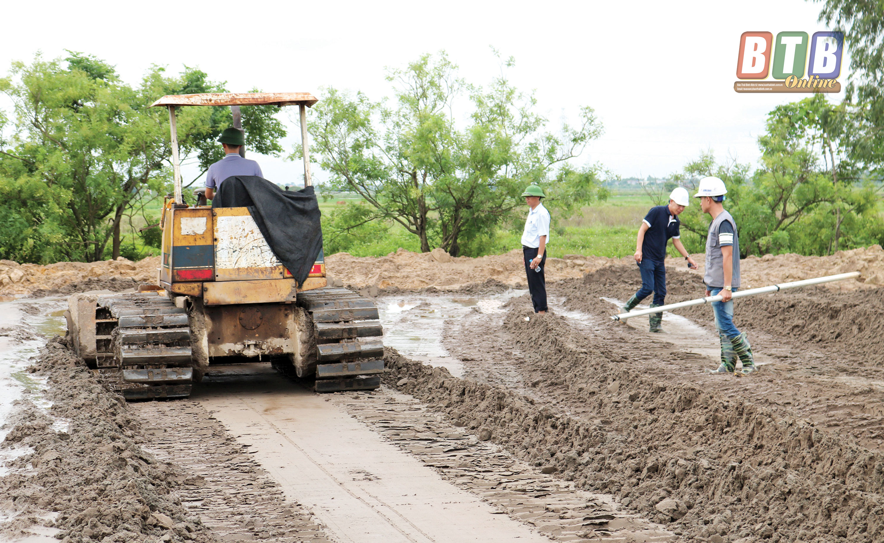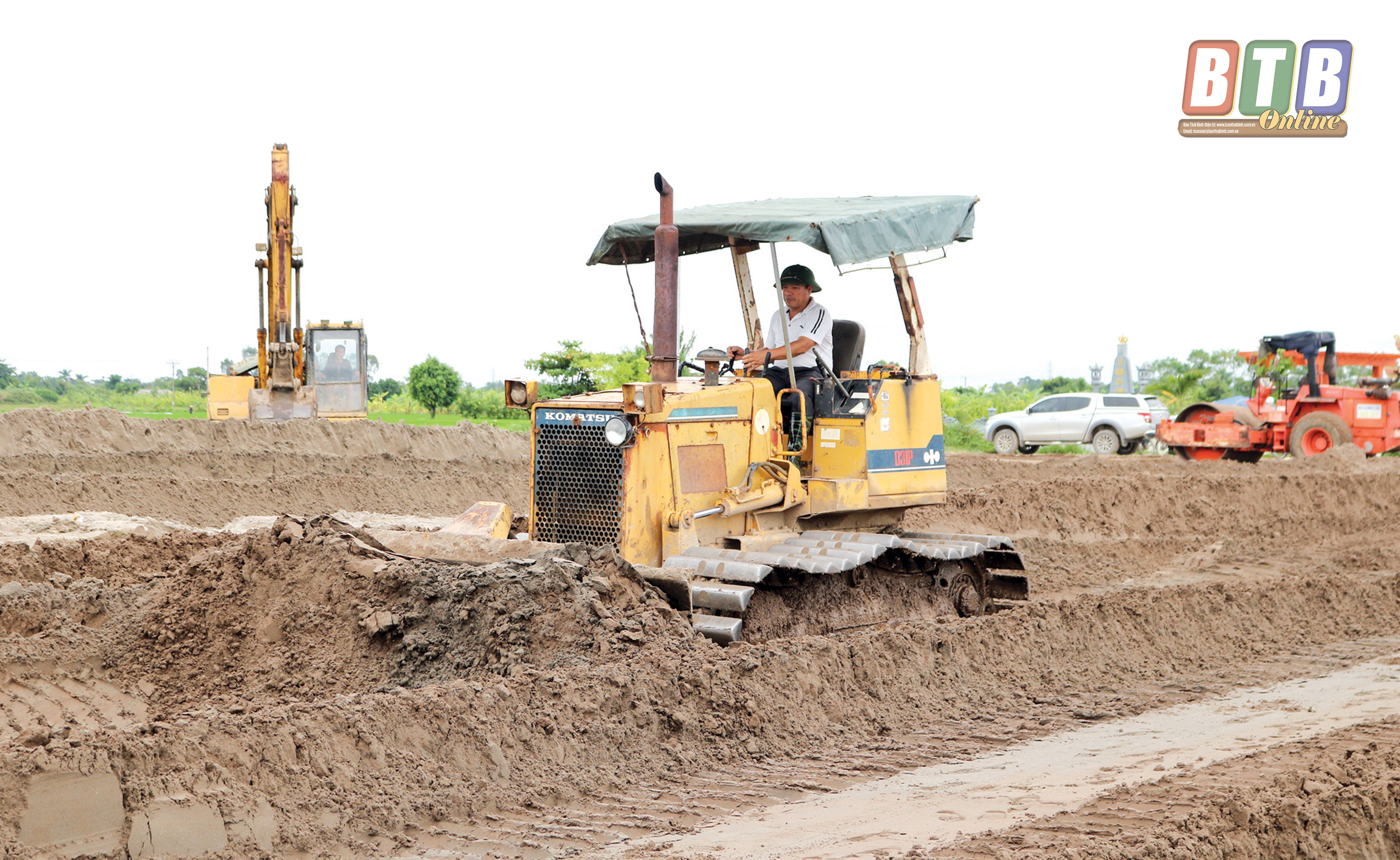 Nhà đầu tư khu công nghiệp chuyên nông nghiệp Thaco - Thái Bình triển khai thi công san lấp mặt bằng.