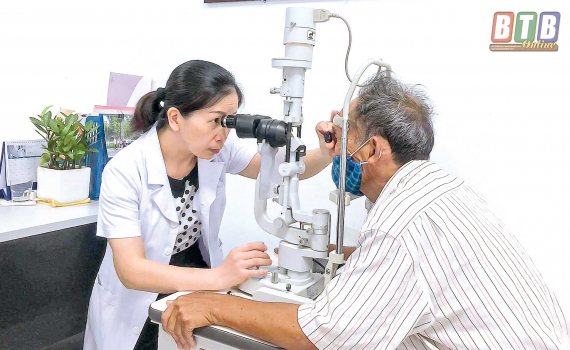 Người dân khám chữa bệnh bằng thẻ BHYT tại Bệnh viện Mắt Thái Bình.
