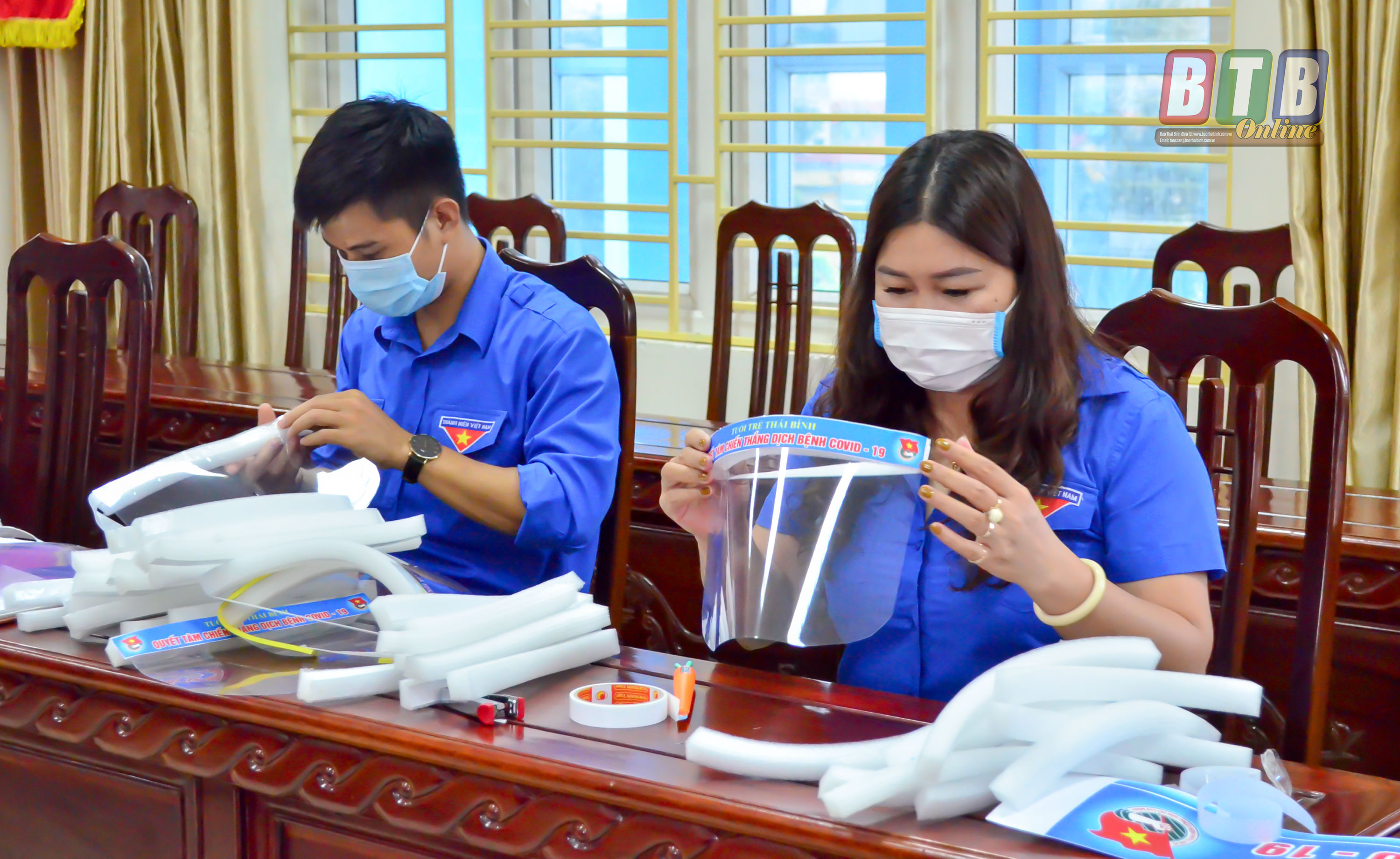 Cán bộ cơ quan Tỉnh đoàn làm kính chắn giọt bắn tặng các đội hình thanh niên tình nguyện ở cơ sở.