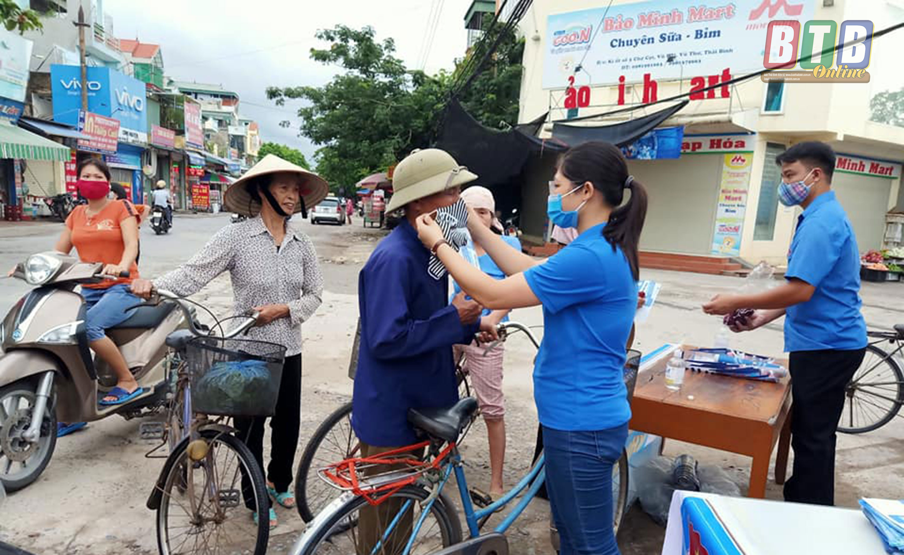 Đoàn viên, thanh niên phát khẩu trang cho người dân tại Vũ Hội (Vũ Thư).