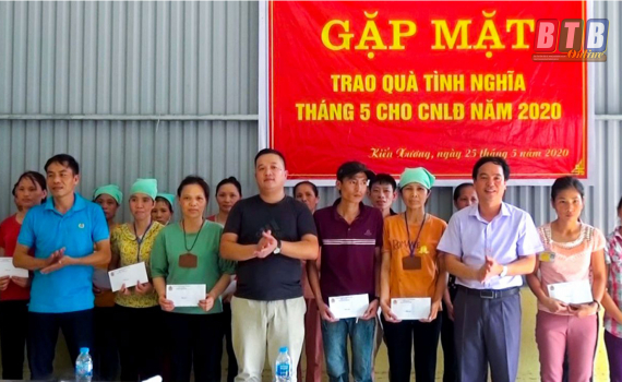 Lãnh đạo huyện Kiến Xương và Liên đoàn lao động huyện Kiến Xương trao quà tình nghĩa tháng 5 cho công nhân lao động.