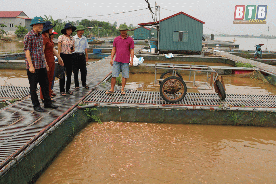 Nuôi cá lồng ở xã Quỳnh Ngọc, huyện Quỳnh Phụ thường chịu rủi ro do tác động của bão lũ.