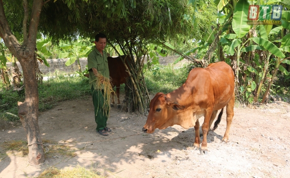 Gia đình ông Đoàn Văn Bình, thôn Mỹ Nguyên, xã Quang Trung (Kiến Xương) được hỗ trợ bò giống để phát triển kinh tế.