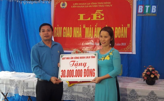 Theo kế hoạch trong năm 2018, Liên đoàn Lao động huyện Thái Thụy sẽ trao 6 căn nhà "Mái ấm công đoàn” cho đoàn viên có hoàn cảnh khó khăn về nhà ở với tổng kinh phí 180 triệu đồng.