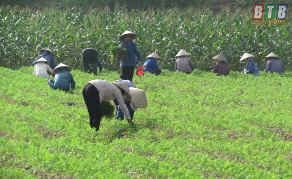Nông dân xã Điệp Nông chăm sóc cây cà rốt.