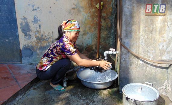 Gia đình chị Đỗ Thị Phương (xã An Khê, Quỳnh Phụ) phấn khởi khi được sử dụng nước sạch.