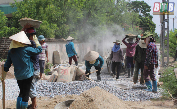 Người dân xã Hợp Tiến (Đông Hưng) làm đường giao thông nông thôn