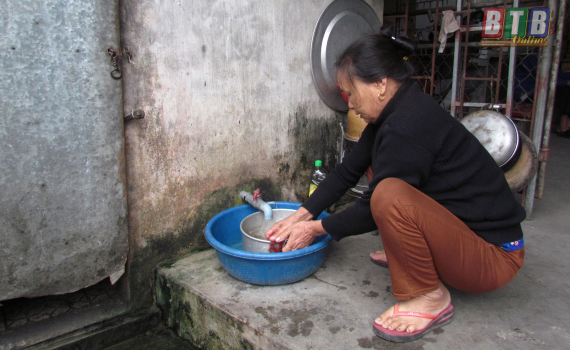 Người dân xã Bắc Sơn (Hưng Hà) sử dụng nước sạch trong sinh hoạt.