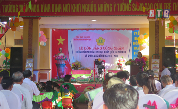 Trường mầm non Bình Định đón Bằng công nhận Trường đạt chuẩn quốc gia mức độ 2 năm 2018.