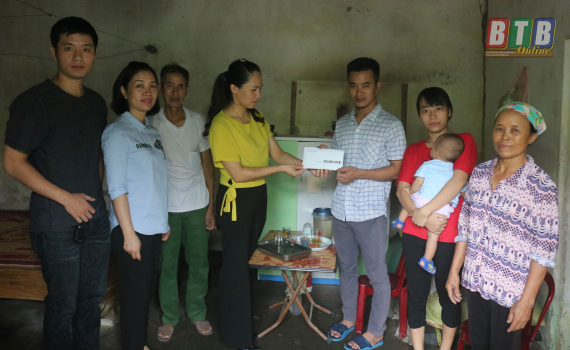 Đại diện Quỹ Bảo trợ trẻ em tỉnh trao tiền hỗ trợ cho gia đình chị Nguyễn Thị Hiên.