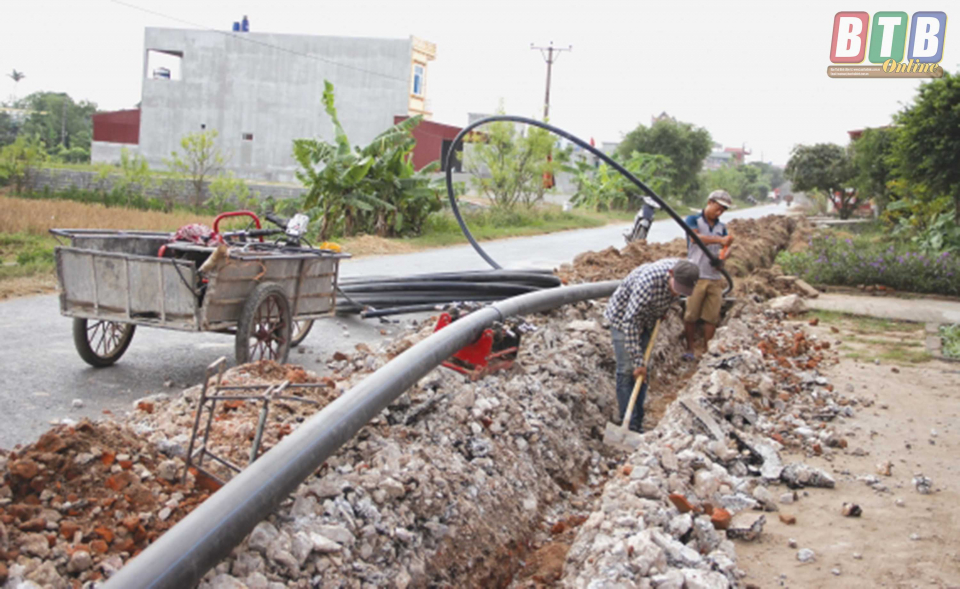 Công ty Cổ phần Casaro miền Bắc lắp đặt đường ống dẫn nước sạch tại xã Thái Dương (Thái Thụy).