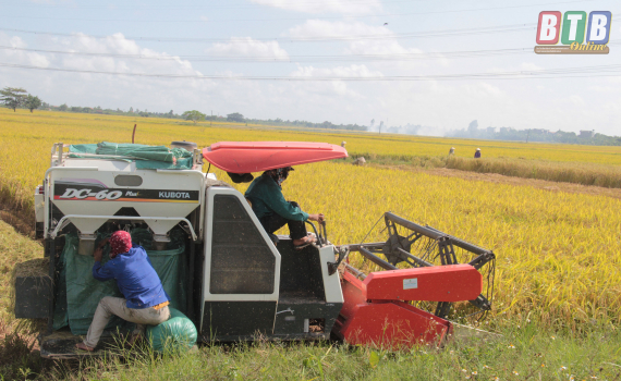 Thu hoạch lúa ở Đông Tân