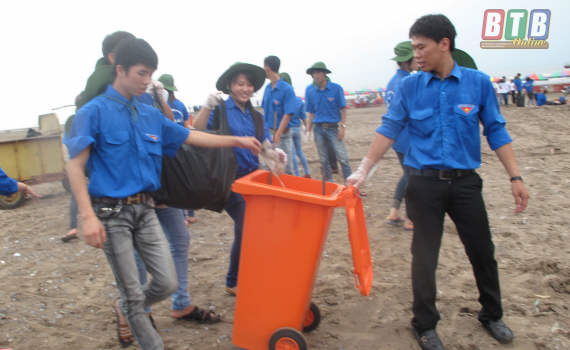 Đoàn viên thanh niên tham gia dọn vệ sinh môi trường biển Cồn Vành