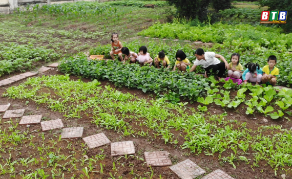 Tự tay trồng rau, cây ăn quả để cung cấp nguyên liệu sạch 100% cho bữa ăn trưa của trẻ. Lâu dần, ý tưởng ấy phát triển thành một trang trại khép kín thu nhỏ, độc đáo ngay trong trường mầm non.