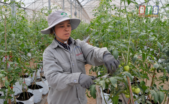 Chăm sóc cà chua trong nhà kính.