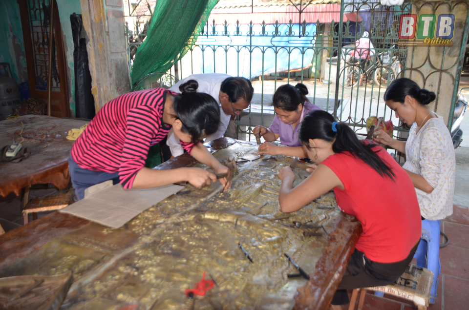 Nhiều người lao động tại làng nghề chạm bạc Hồng Thái (Kiến Xương) còn thiếu kiến thức về an toàn, vệ sinh lao động.