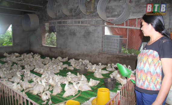Chị Phạm Thị Hiền, xã Đông Kinh (Đông Hưng) làm giàu từ nuôi ngan, vịt.