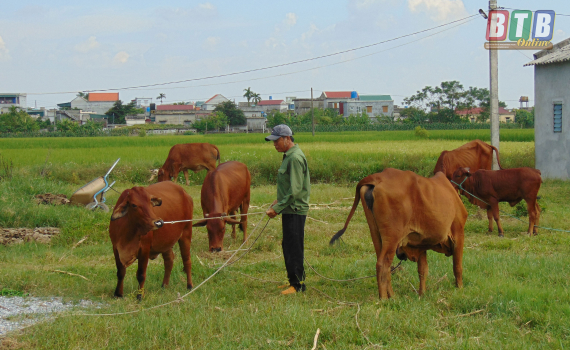 Nông dân xã An Khê, huyện Quỳnh Phụ phát triển chăn nuôi bò từ nguồn vốn vay ưu đãi của Chính phủ.