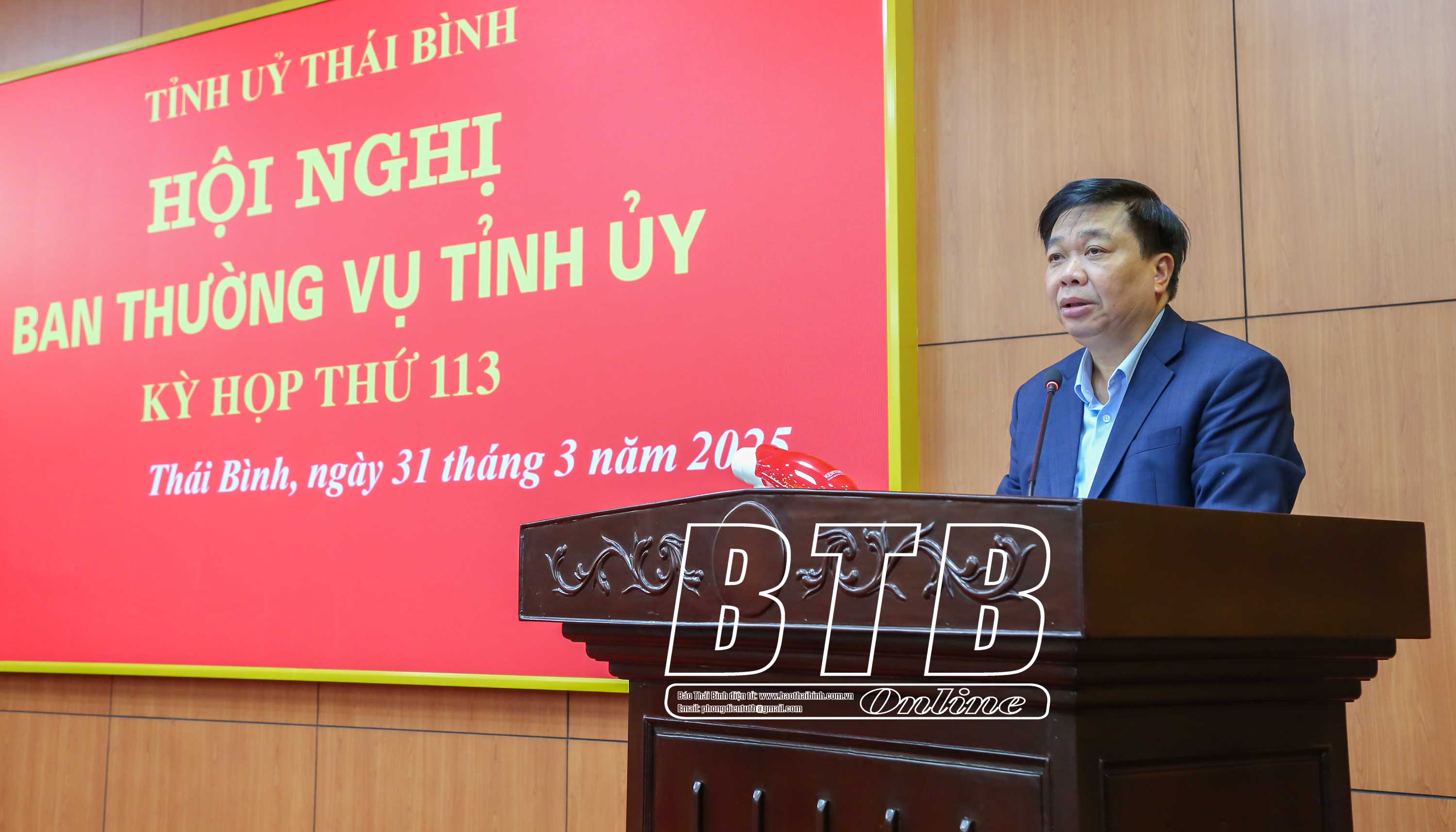 Chiều ngày 31/3, Ban Thường vụ Tỉnh ủy tổ chức kỳ họp thứ 113 để thảo luận, cho ý kiến về tình hình phát triển kinh tế - xã hội quý I, triển khai nhiệm vụ trọng tâm quý II/2025 và một số nội dung quan trọng khác. Các đồng chí: Nguyễn Khắc Thận, Bí thư Tỉnh ủy; Nguyễn Tiến Thành, Phó Bí thư thường trực Tỉnh ủy, Chủ tịch HĐND tỉnh; Nguyễn Mạnh Hùng, Phó Bí thư Tỉnh ủy, Chủ tịch UBND tỉnh chủ trì hội nghị.
