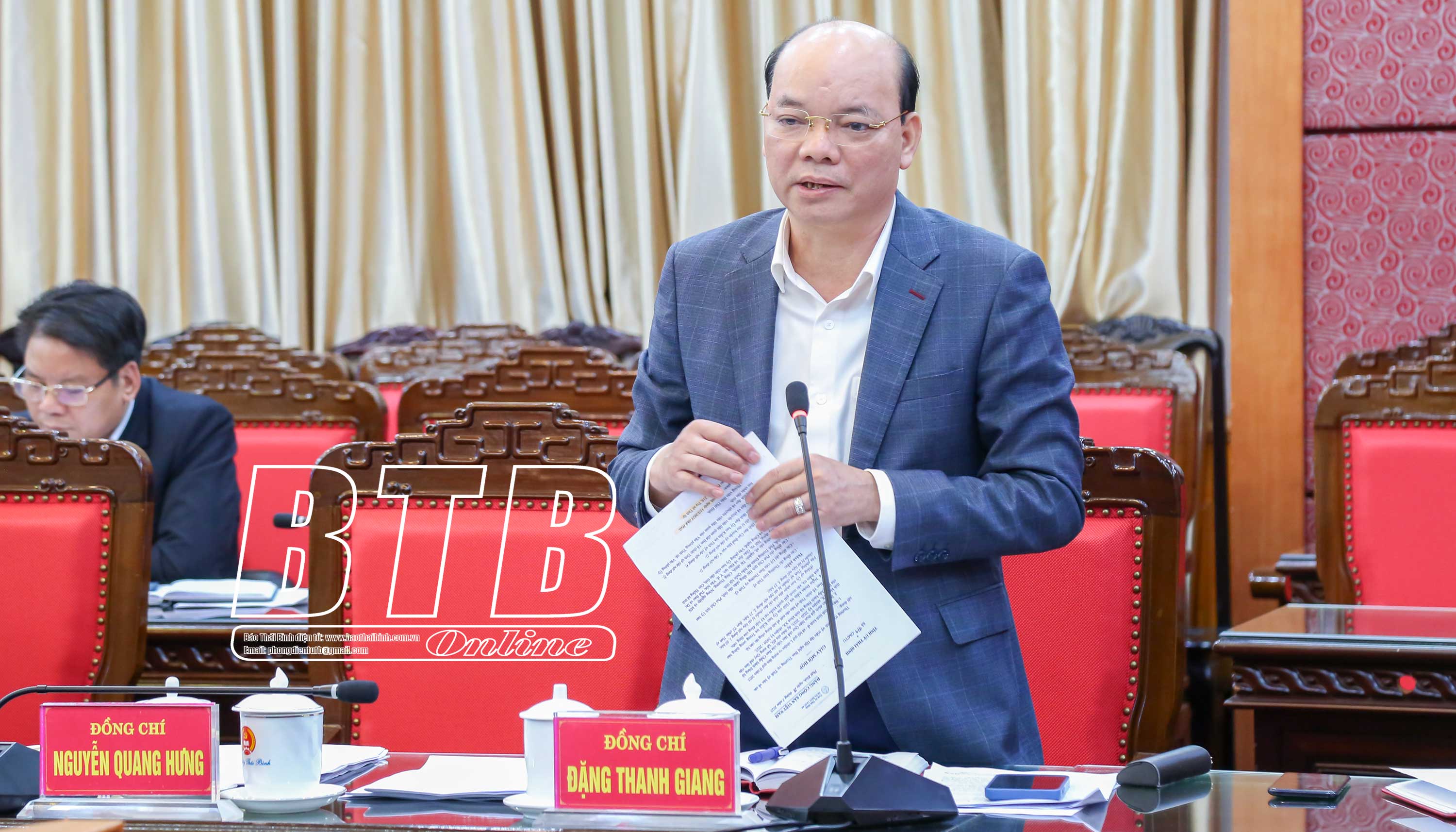 Đồng chí Nguyễn Quang Hưng, Ủy viên Ban Thường vụ Tỉnh ủy, Phó Chủ tịch thường trực UBND tỉnh trình bày báo cáo tại hội nghị.